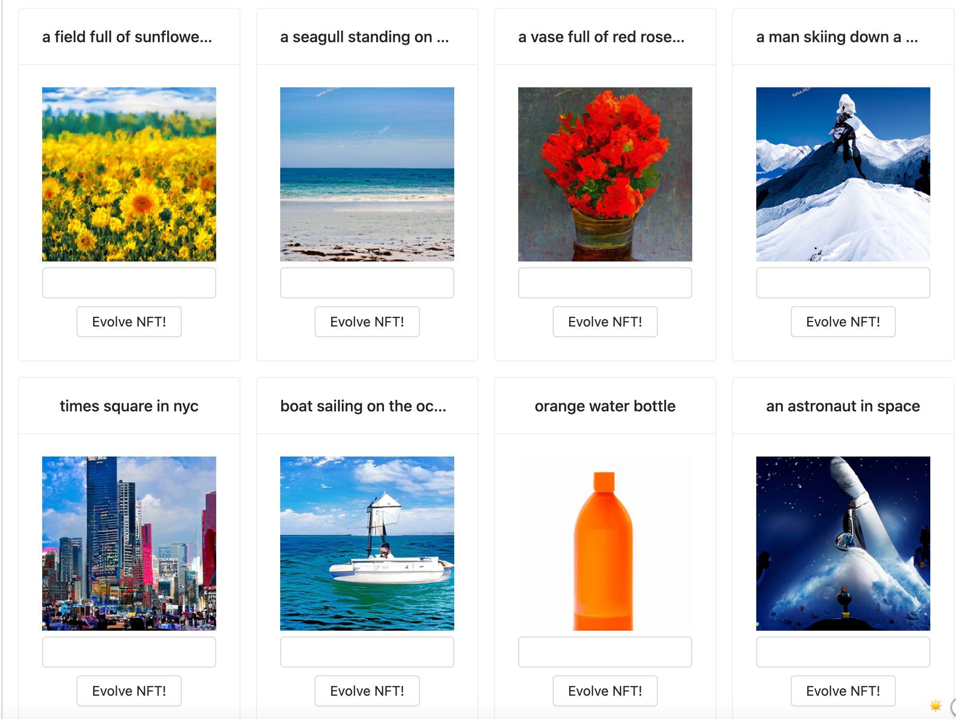 An NFT that takes a text prompt upon mint and returns a generated image to match the prompt, all happening in real-time on-chain. The project is called "EvolvingNFT" because the minter's address is used as a random seed to the ML algorithm. When the NFT is transferred, inference is re-run with the same prompt but with the recipient's wallet address, so the picture is always evolving to match the new owner.
