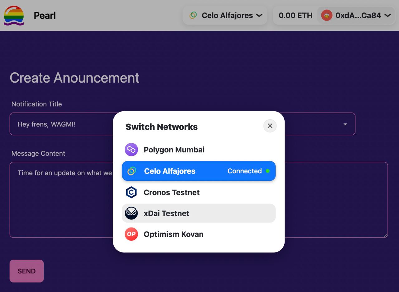 Grace, Zo, and the Pearl team won the ETHNYC hackathon with a personalized announcement platform for web3 communities. Authorized users can create (and categorize) announcements and send them to wallet addresses that contain specific NFTs. Recipients control which projects & categories they receive notifications from. The wallet-to-wallet communication is powered by Yet Another Message Protocol (YAMP), a variation on SMTP that looks up message servers for wallet addresses using smart contracts.